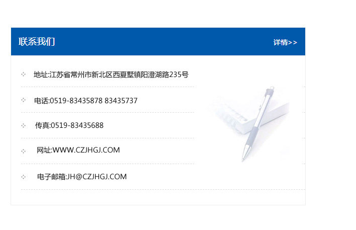 地址:常州市新北區友邦商務大廈1幢16、17層  電話:0519-85101652  傳真:0519-85112595  郵編:213022  網址:www_cz-jiayue_cn.grandcomingup.com  郵箱:xiajifengaa@163.com